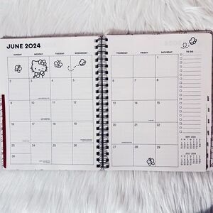 Get ready for the new year with this monthly 2024 hello kitty planner! Features monthly and weekly view and plenty of extra pages for notes! Measures approx 11 x 9. Color is red