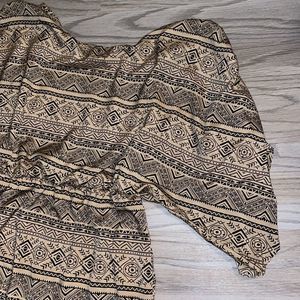 Love how the back is completely open. It also has a tie to make it a little more playful. The front is scoop neck. The sleeves have elastic that scrunches them on the top.