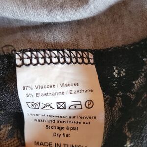Designed in france printed tee of the city of Paris. Great graphics and pretty embellishments on the words. Viscose fabric front and black lace in the back.