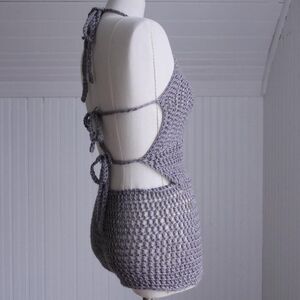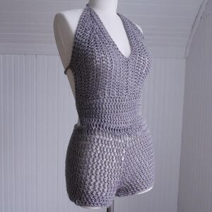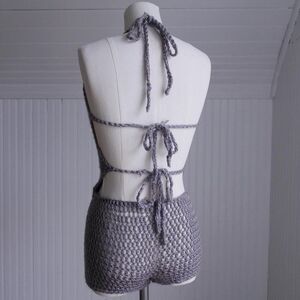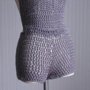 This is like super sexy chain mail! Elasticized waistband with lots of bounce, booty hot shorts, triple tie open back, semisheer open knit, super soft feels like acrylic, this came from the collection of a crocheting wild thing! She sold her creations from the 70s-90s