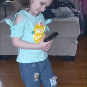 Hello spring off shoulder shirt jeans set...My mini not included haha
