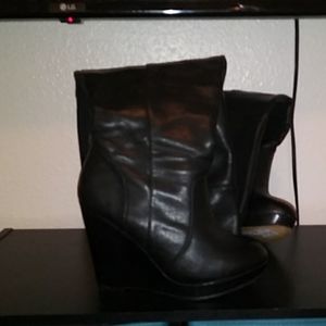 Over the knee black leather wedge boots