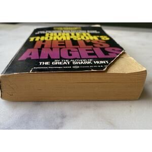 . Hell's Angels by Hunter S Thompson - 1981 Vintage Paperback. All pages are intact. Book is yellowed & front cover is torn/ missing pieces of the corner. Back cover shows wear.