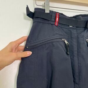 designed to handle serious powder days, these helly hansen ski pants are built with helly tech waterproofing, breathable construction, and taped seams to keep you dry from first chair to last run. the belted waist and 2-way stretch fabric offer a secure fit with full mobility, while the zip thigh vents let you cool down when things heat up. finished with gaiters to keep snow out and primaloft® insulation to lock warmth in. moderate wear with plenty of life left on the slopes, for après ski adventures, or cold-weather travel.