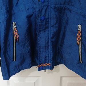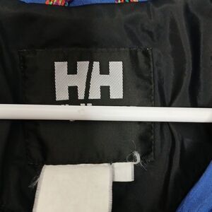 Stylish Helly Hansen jacket. Features a bold black and blue design. Perfect for outdoor adventures.