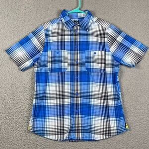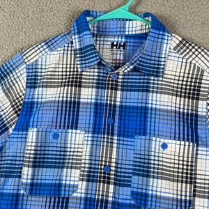 Helly Hansen Button Up Shirt Men's Small Blue Plaid Causal Performance Outdoors