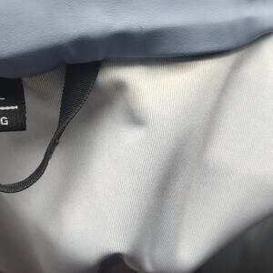Lining has yellowing along seams... could be the glue. This often happens with polyurethane jackets- it does not affect the overall look or function of this great jacket.