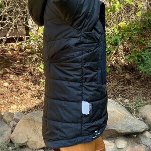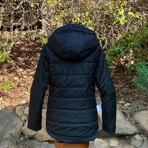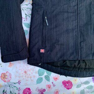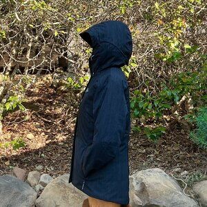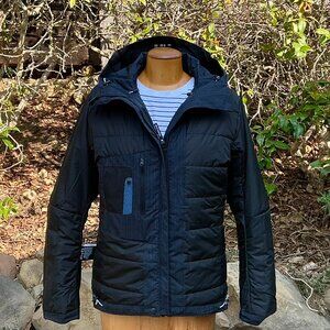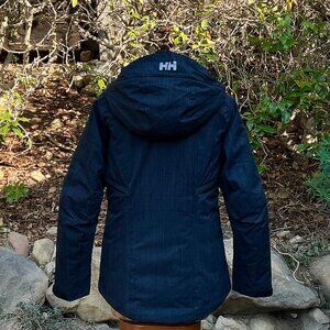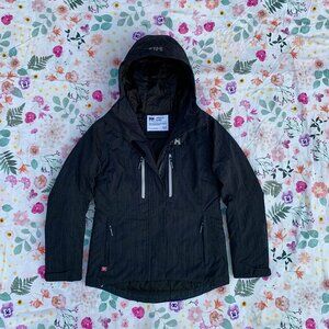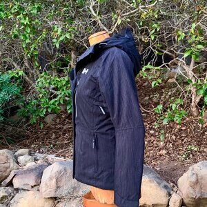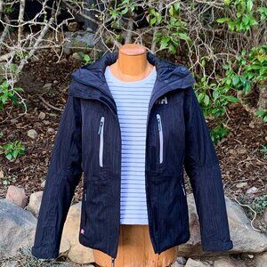 Designed by Norwegians who understand year round wet and cold conditions. The seam sealed, waterproof, windproof, breathable fabric along with articulated elbows, and zippered side ventilation are essential features in a jacket made for demanding outdoors people. The hood and bottom hem have drawcords, with Velcro at the cuffs to adjust for comfort. With four front zippered pockets and one interior see through mesh pocket, you'll have plenty of room for your cellphone, ski lift ticket, lip balm, etc. This Helly Tech Performance Verglas Series alpine ski jacket has quilted Primaloft insulation for warmth and durability, with a contemporary and elegant charcoal grey exterior-- apropos for the trail, the slope, meeting at the chalet for apres ski drinks, and also looks professional enough for work. Back length measures 26", front length 24", armpit to armpit approximately 19", size XS, condition pristine NWOT.