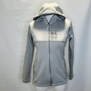 Helly Hansen Hoodie Womens Small Gray Full Zip Snowflake Pattern Fleece Jacket