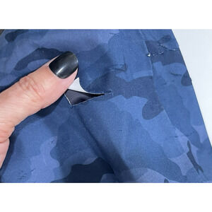 Good preowned condition with light general wear except at the hemline. There is more significant wear and tear at the bottom and slits/hole in the outside fabric on one leg near bottom hem. Please see photos.