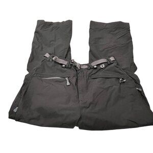 These high-quality insulated ski pants are waterproof, breathable, and 2-way stretch fabric. They feature outer leg ventilation zippers, articulated knees for mobility, boot gaitors with silicone grippers, reinforcement on bottom legs, 2 front zip pockets, adjustable waist, elastic back waist, zip button fly, and belt loops. NOTE: some minor wear at bottom back leg hem, see photos. Otherwise excellent condition, no holes or stains. Color: Iron oxide Sze: XXL