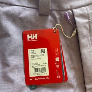 Comfortable heather purple pants with Helly Hansen logo. Snowboard Pants in size Large are a stylish and high-performance option for winter sports enthusiasts. Featuring a solid purple color with a zip closure, these pants are designed with windproof and waterproof technology, making them perfect for skiing, snowboarding, and snowshoeing in the winter and fall seasons. The bib style and bootcut leg offer added protection and flexibility, while the breathable and fully seam sealed construction ensures comfort and durability. With features like HELLY TECH® PERFORMANCE and RECCO® technology, these pants are a reliable choice for active outdoor adventures.