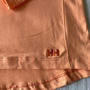 The Helly Hansen line has been designed and developed in Norway since 1877. This Helly Hansen Women's XS Pullover Hoodie in pale orange is a soft and casual piece perfect for outdoor activities like hiking and fishing. Made from a blend of polyamide, polyester, and elastane, this lightweight hoodie features long sleeves, a pullover closure, and a hood for added protection. The moisture-wicking and breathable material ensures you stay comfortable during outdoor adventures, while the subtle logo accent adds a touch of style. Perfect for those who enjoy staying active in nature.