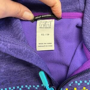 Helly Hansen Purple Women's Size XS Nordic Snowflake Full Zip Fleece Lined Hoodie long sleeve zipped pockets 100% polyester lightweight curved hem hoodie jacket comfy cozy performance outdoorsy gorpcore
