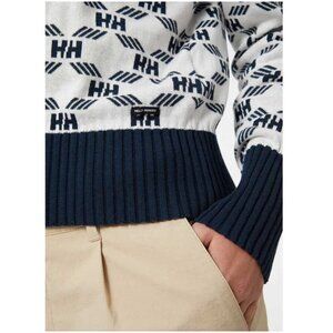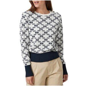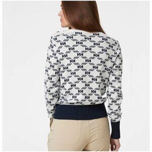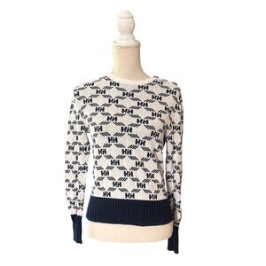 Helly Hansen Skagen Logo Sweater size XS white navy blue jacquard knit button