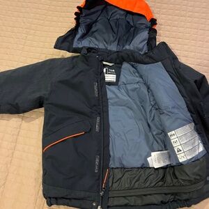 Charcoal winter coat with orange accents. Supper warm. Great winter or ski coat.
