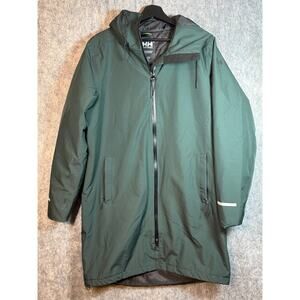 Helly Hansen Women Green Long Aspire Rain Jacket XL Waterproof Vented Reflective