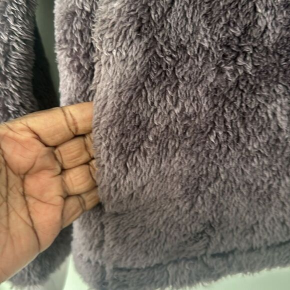 This model features a stand-up collar and cuff hems to protect the upper body from cool winds. The mid-pile fleece fabric is very soft to the touch inside and out.