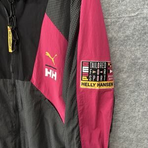 Helly Hansen X Puma Track Jacket Mens Sz S Black Pink Logo Pockets Windbreaker