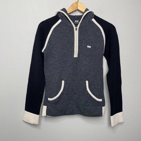 Helly Hanson Color Block Knit Sweater Half Zip Hoodie Embroidered Logo Black Gray White XS