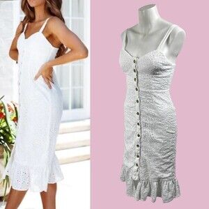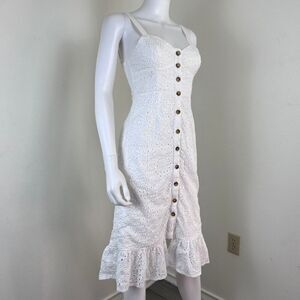 Helly Molly Adalusia Size S White Eyelet Ruffle Embroidered Cotton Midi Dress