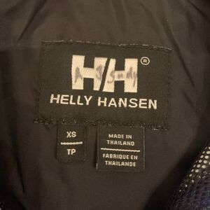 Fro the Helly Tech line. Jacket was a name on the interior label at show. No rips or tears but there is some discolorization around cuffs where fabric has been in one position for a while. Apparently, indicative of this protective fabric. I tried to show it in photos. Jacket has been cleaned.