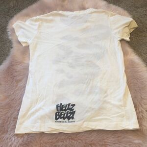 Hellzbellz pre-owner tee size small. Please review photos, slight stain on right upper chest (that I can find).