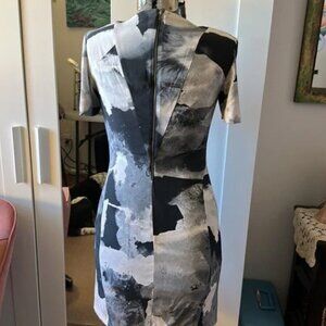 Helmut Lang Abstract Mini Dress with Zipper and Scoop Neck