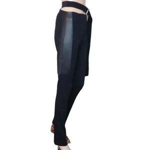 The Helmut Lang Panel Skinny Pant is a mid-rise, straight-leg style made from smooth stretch cotton twill featuring contrasting leather panels.