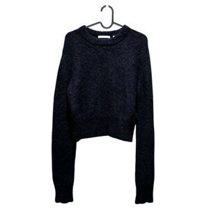 Helmut Lang Black Alpaca Wool Fuzzy Cropped Sweater Crewneck