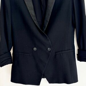 90’s/Y2K Helnut Lang black blazer with gathered detail along the 3/4 sleeve cuffs
