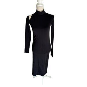 Helmut Lang Black Bodycon Long Sleeve Cutout Dress Size M/L