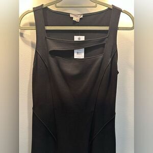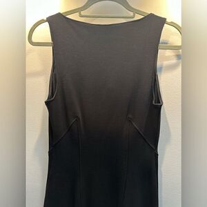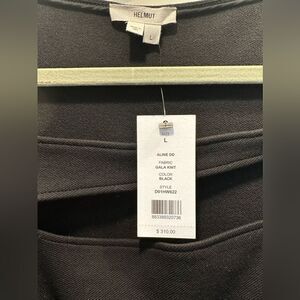 Little black dress with an edgy twist from Helmut Lang featuring the Gala knit fabric, square neck with cut out detail and figure enhancing contoured seaming detail. Was featured on an episode of Southern Charm by Naomie Olindo.