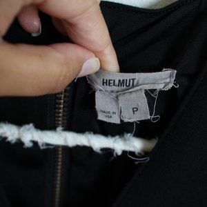 Excellent condition Helmut Lang Black Sheath Asymmetrical Dress. Black. Stretchy structured fabric. Cap sleeves. Asymmetrical hem. Size P. Made in the USA