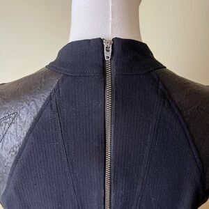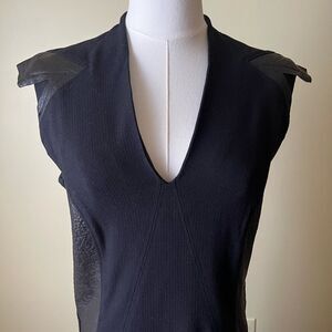 Helmut Lang Blistered Leather Panel Dress Size 10 Ribbed Knit V-Neck Sheath