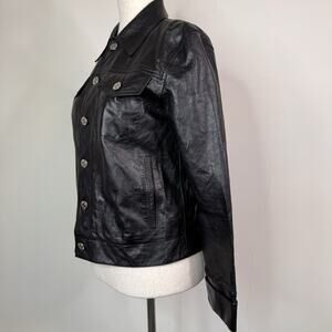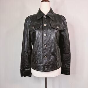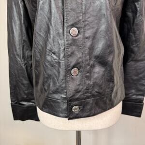 Helmut Lang Calfskin Leather Trucker Jacket Black Edgy Size Small $1495