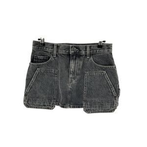 Helmut Lang 'Carpenter' Black Cotton Denim Micro-Mini Skirt Size 26: unlined, zip fly with button closure, 7-pocket styling, cargo styling, rigid denim fabric, measurements: 15 inch width x 12 inch length.