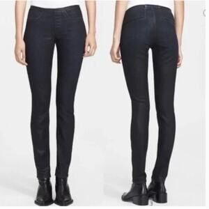 Helmut Lang Dark Wash Skinny Jeans Faux Leather Coated Pull-On Size 25