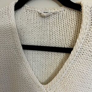 Helmut Lang Deep V Fisherman Knit Dropped Shoulder Cotton Blend Sweater Small