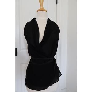 Helmut Lang Delta Overlap Black Draped Wrap Top Petite X-Small