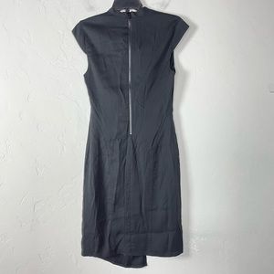 Helmut Lang Dress Bodycon Mini Solid Black Cap Sleeve Cut Out Asymmetrical Y2K