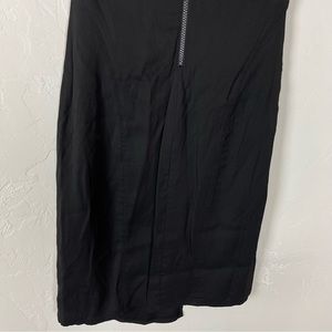 Helmut Lang womens size 4 bodycon mini dress in a solid black color. Cap sleeves. V neckline. Zipper back. Textured knit fabric. Lined. Small step asymmetrical style hemline with slit. Bandage style waistline. Career office wear, or a perfect Y2K piece! Made in USA, silk blend fabric. Only flaw is a small snag, see photos. No others.