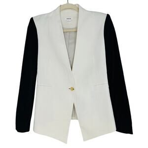 Helmut Lang Era Colorblock Suiting Blazer – White & Black Linen Blend, Size 0