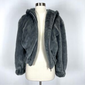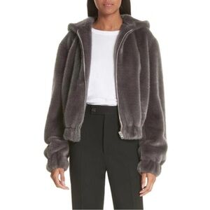 Helmut Lang Faux Fur Hooded Bomber Jacket. In Gringo, grey. Lined. In excellent conditition, like new. Size XS.