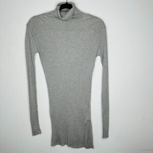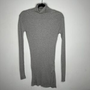 Helmut Lang Gray Turtleneck Long Sleeve Ribbed Knit Mini Dress Longline Top Med
