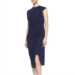 Helmut Lang Helix Twisted Navy Blue Women XSP Raw Edge Dress