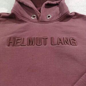 Helmut Lang Hoodie Womens Large Burgundy Heavyweight Embroidered Logo Casual