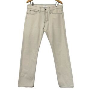 Helmut Lang Jeans Ecru Beige Contrast Stitch Straight Leg Button Fly Unisex Women’s 30 Men’s 33