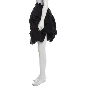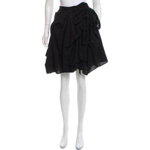 Great Helmut Lang skirt. Black puffy tiered skirt with large twisted/braided wrap tie. Hook waist closure. From the late 2000’s era (Helmut Lang New York tags, not vintage pre-2005)