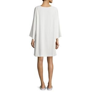 Helmut Lang Long-Sleeve Crepe Shift Dress in Ivory, Cream Off White Color, Size Small, Long Sleeves, Oversized Flowy Sleeves, Popover, Bateau Neckline, Flowy Crepe Material, Relaxed Fit, Excellent Condition with No Flaws
